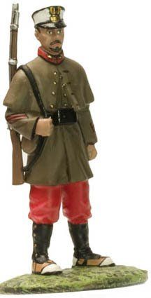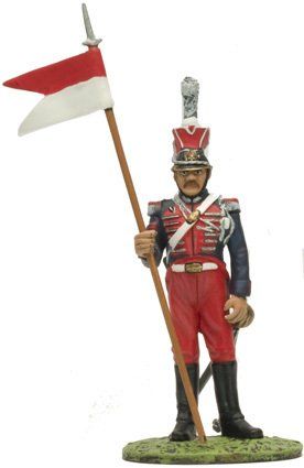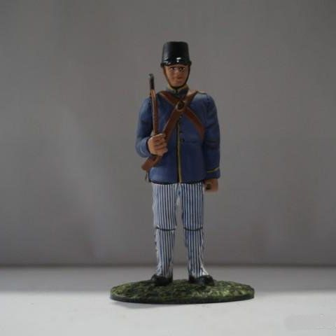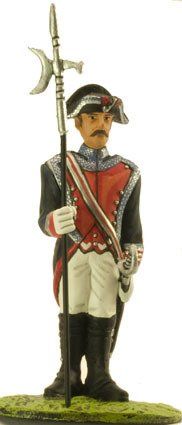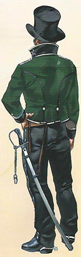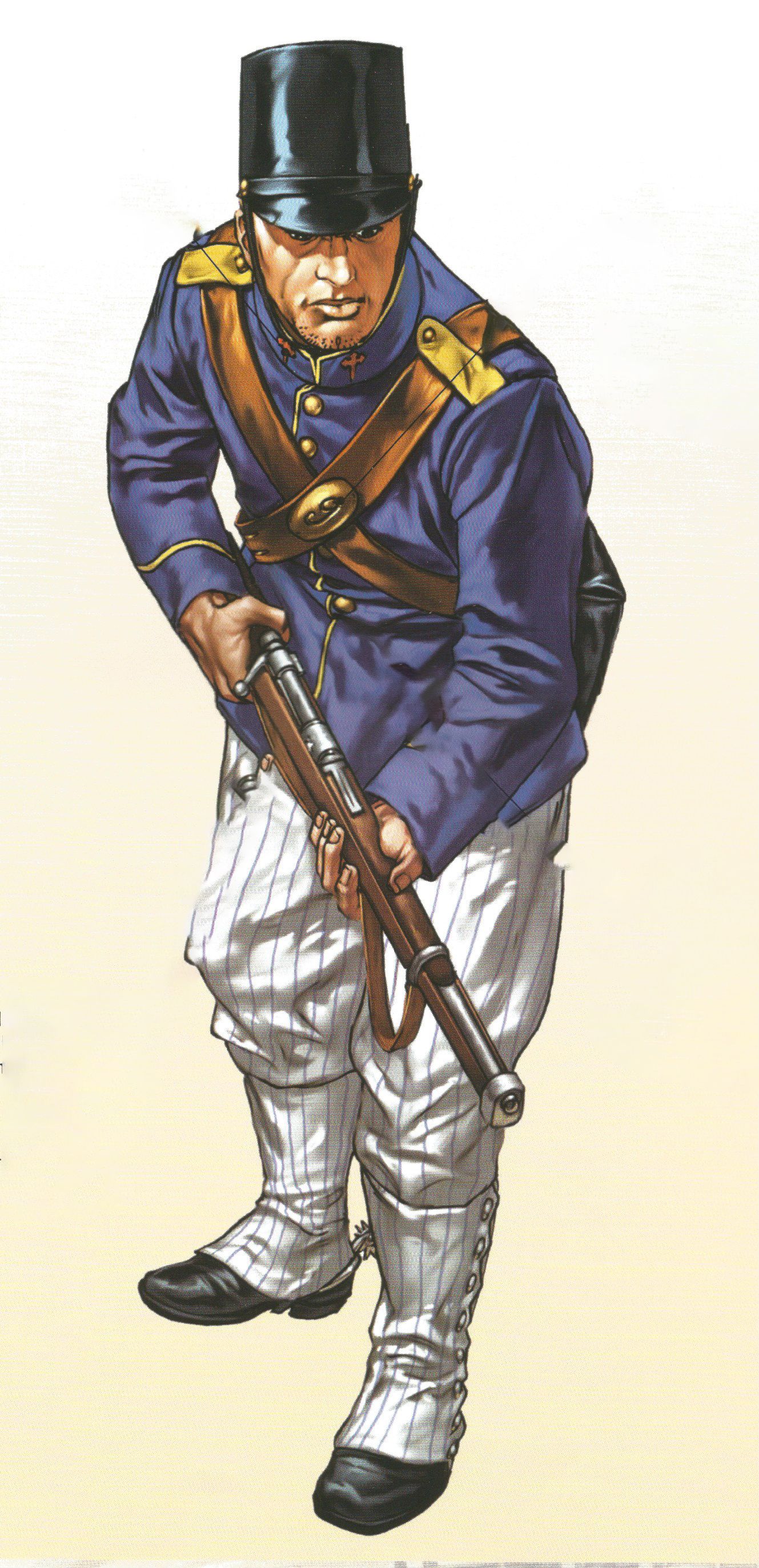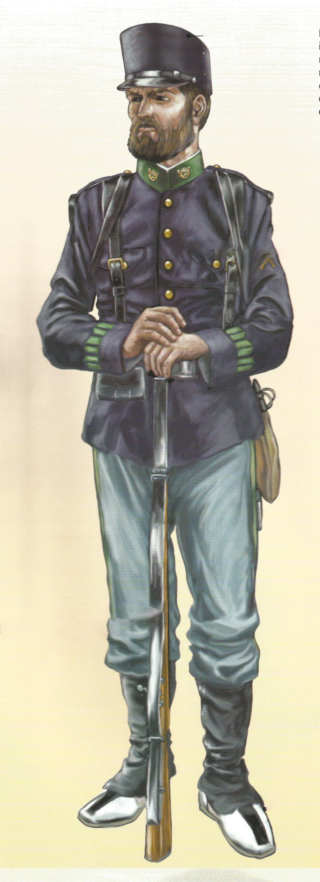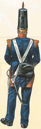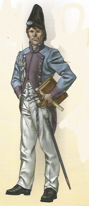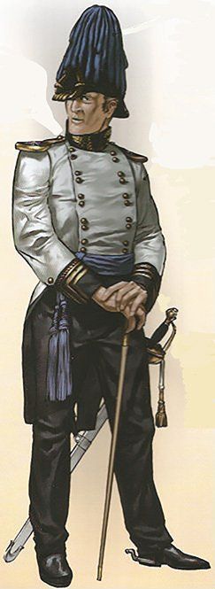 Los sargentos vestían igual que los soldados, pero se diferenciaban en que sus uniformes estaban confeccionados con mejores telas, en las charreteras y en que llevaban una espada con el puño de latón.