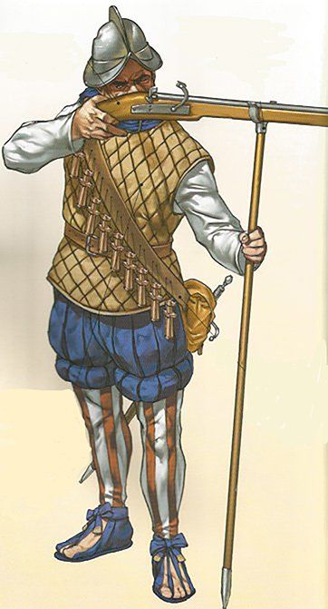 A estos soldados comenzó a llamárseles fusilaros para diferenciarlos de los granaderos. No obstante, ambos llevaban sarta de doce tiros, “los doce apóstoles” frascos de pólvora, polvorines para cebar, bolsas, horquillas y mechas. Los piqueros se armaban con picas largas y espadas de taza con gavilanes colgadas de un talabarte.