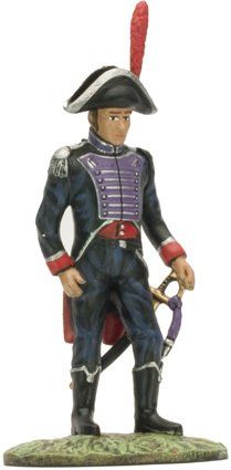 Sombrero de fieltro negro guarnecido con galón, presilla y botón de plata y cucarda roja. Ademas un par de medias de estambre enmarcado, dos camisas, dos corbatas largas de muselina, un corbatín negro, un par de guantes, un cordón de plata y azul para la espalda, casi 2,5 metros de cinta para la coleta, un lazo para la coleta, una banderola para el sable o el espadín y un cinturón. Sin embargo, no sé decía nada de las botas altas ni de las espuelas.
