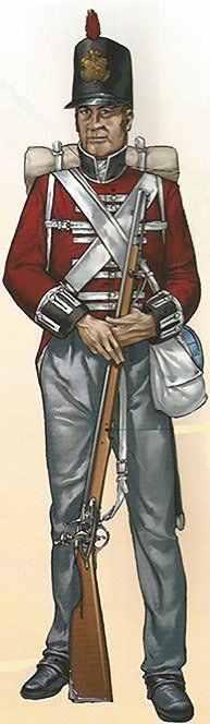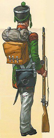 El sombrero era con galón de estambre dorado y se completaba con una escarapela también de estambre, pero encarnada. Otras prendas y piezas que se entregaban al soldado eran: dos camisas de lienzo y botines de lo mismo, dos corbatines de cinta de estambre negro, un par de zapatos de baqueta, un par de medias de lana blanca o calcetas de hilo, una cartuchera “a la moderna” de funda de suela de baqueta con funda de lo mismo, un portabayoneta también de baqueta con hebilla de latón, un frasco de baqueta con portafrasco y portafusil de ante y una mochila de lienzo de cáñamo. El estampado de la tapa de la cartuchera llevaba las armas del regimiento.