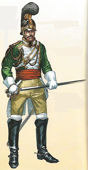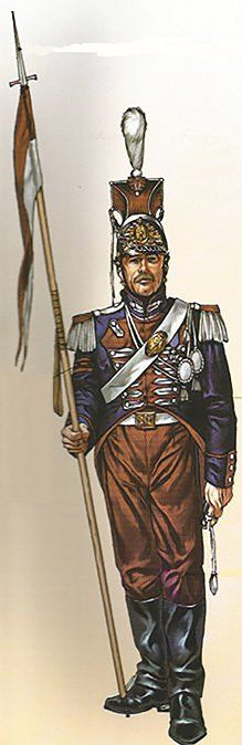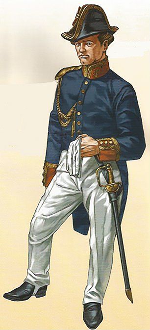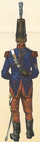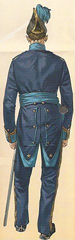 Los tambores y los pianos usaban casacas y calzón azul. Las chupas y vueltas eran granza con guarnición de galón de las Casa Real.