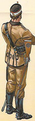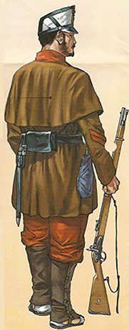 Las unidades francesas también habían comenzado a usar colores similares para sus tropas coloniales en 1901. En España, una real orden de septiembre de 1909 había autorizado a las tropas de guarnición en Ceuta a utilizar provisionalmente uniformes de color caqui. Estos fueron adquiridos a una casa de Manchester al no existir este tejido en la Península. El colorido era amarillo tostado, muy similar al empleado por el ejército británico. En 1912, la orden de extendió a Melilla.