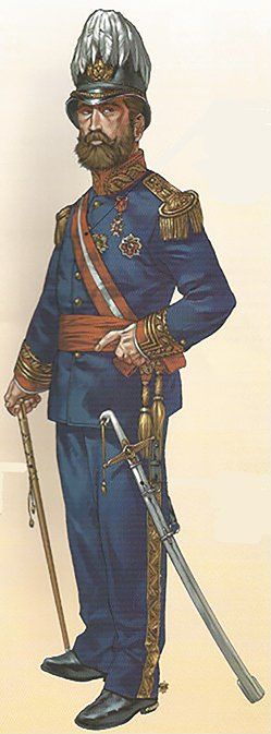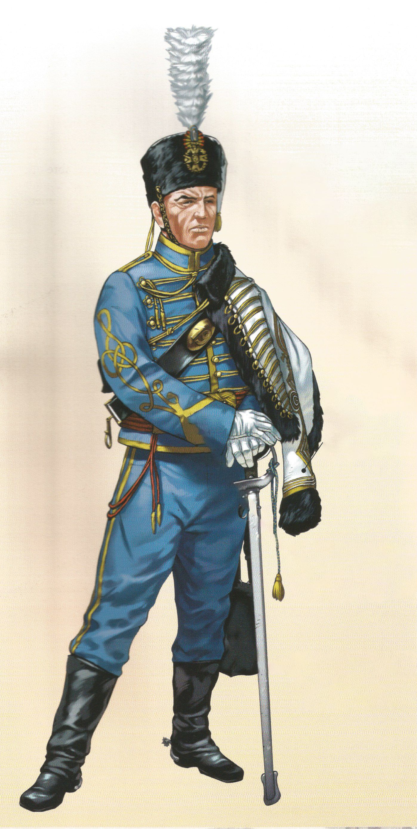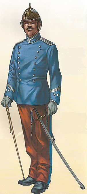 El uniforme de diario se completaba con borceguíes y polainas de color negro, guantes avellana y un fiador para el sable de pelo de cabra, también negro.