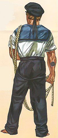 Don Juan Jose Navarro de Viana y Buffalo, Marqués de la Victoria y Capitan General de la Armada, incorporo a las laminas de su Diccionario demostrativo con la configuración o anatomía de toda la arquitectura naval moderna, escrito entre 1719 y 1756, una relación de las armas y equipo de los soldados de marina y otros efectos que se llevaban a bordo para el combate defensivo u ofensivo, tan frecuentes contra los novios británicos, holandeses o piratas, tanto en Europa como en America: bolas con agujas, polvorín y frasco; cinturón con su bayoneta; cartuchera; frasco de pólvora con su cordón; cartuchos de fusil y pistola;Piedra de fusiles y pistolas; hacha de abordar; hacha de soldado de marina o granadero; vaina; bayoneta con su vaina; pistola con cordón; trabuco; Fusil con su correa; fusil armado con bayoneta; mosquete con horquilla; horquilla de hierro movible; pernere; guadaña de defensa, excelente para los abordos; chuzo; partesana con regatón; espolón con regatón; media pica; alabada; espada; vaina con puntera; sable con su cordón; alfanje; arca de armas; tablón lleno de clavos, con las puntas hacia arriba, para poner sobre las cubiertas al tiempo de dar el abordo usado por los suecos; pedrero de bronce para armar la lancha; pedrero de hierro puesto en su horquilla para armar la lancha y mortero del pedrero.