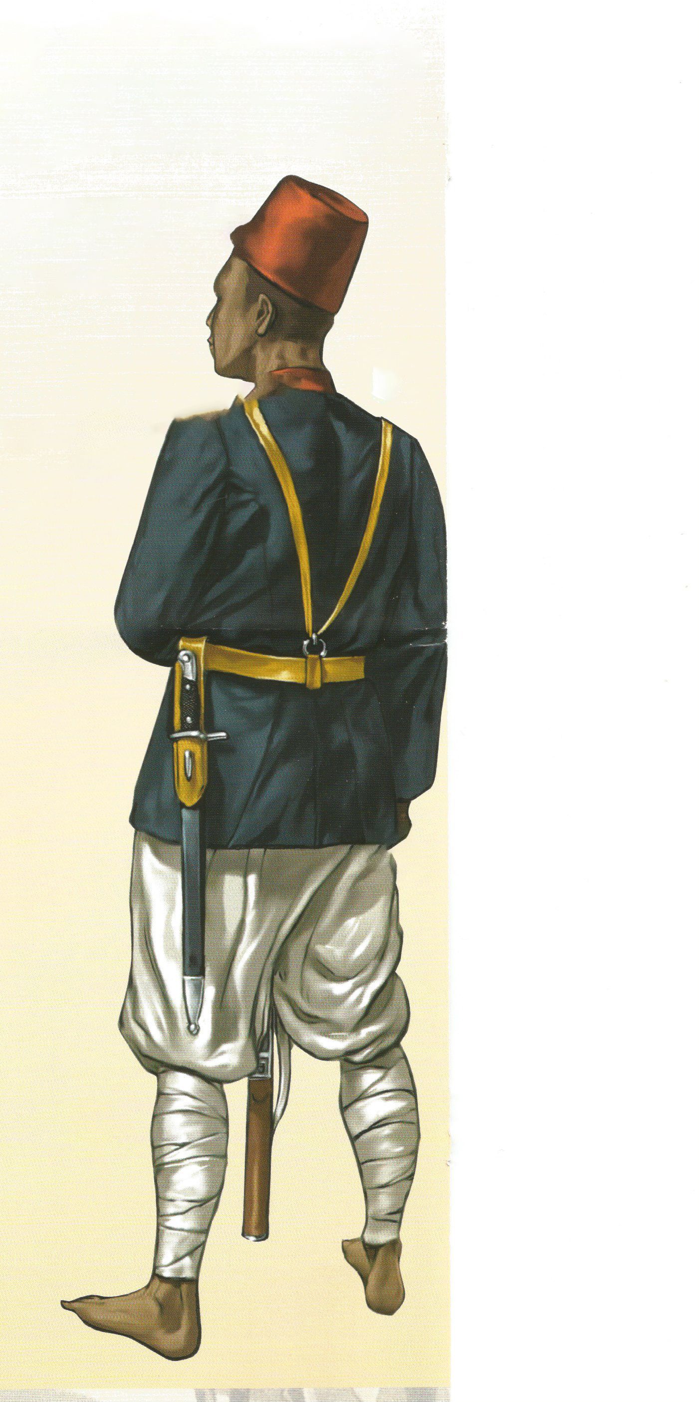 La correa portafusil también es de ante amarillo, ya que, como se ha indicado, se trata del uniforme de gran gala.